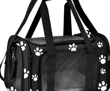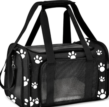 Comprar agoraBolsa Transporte Pet para Avião Cabine Viagem Ventilação Cães e Gatos Reforçada até 14kg Tela Arejada Alça e Tapete Removível - Duke & Dixie (Preto/Pata).
