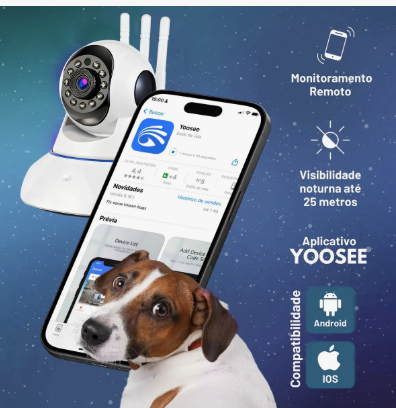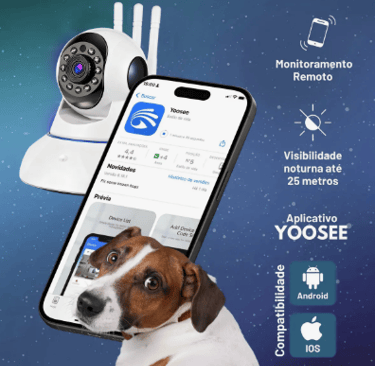 Acompanhe seu pet pelo celular e saiba exatamente onde ele está.Câmera de Vigilância Sem Fio: Esta câmera de vigilância Wi-Fi suporta transmissões de vídeo, alarmes por voz e rastreamento de celular. A lente é feita de vidro.